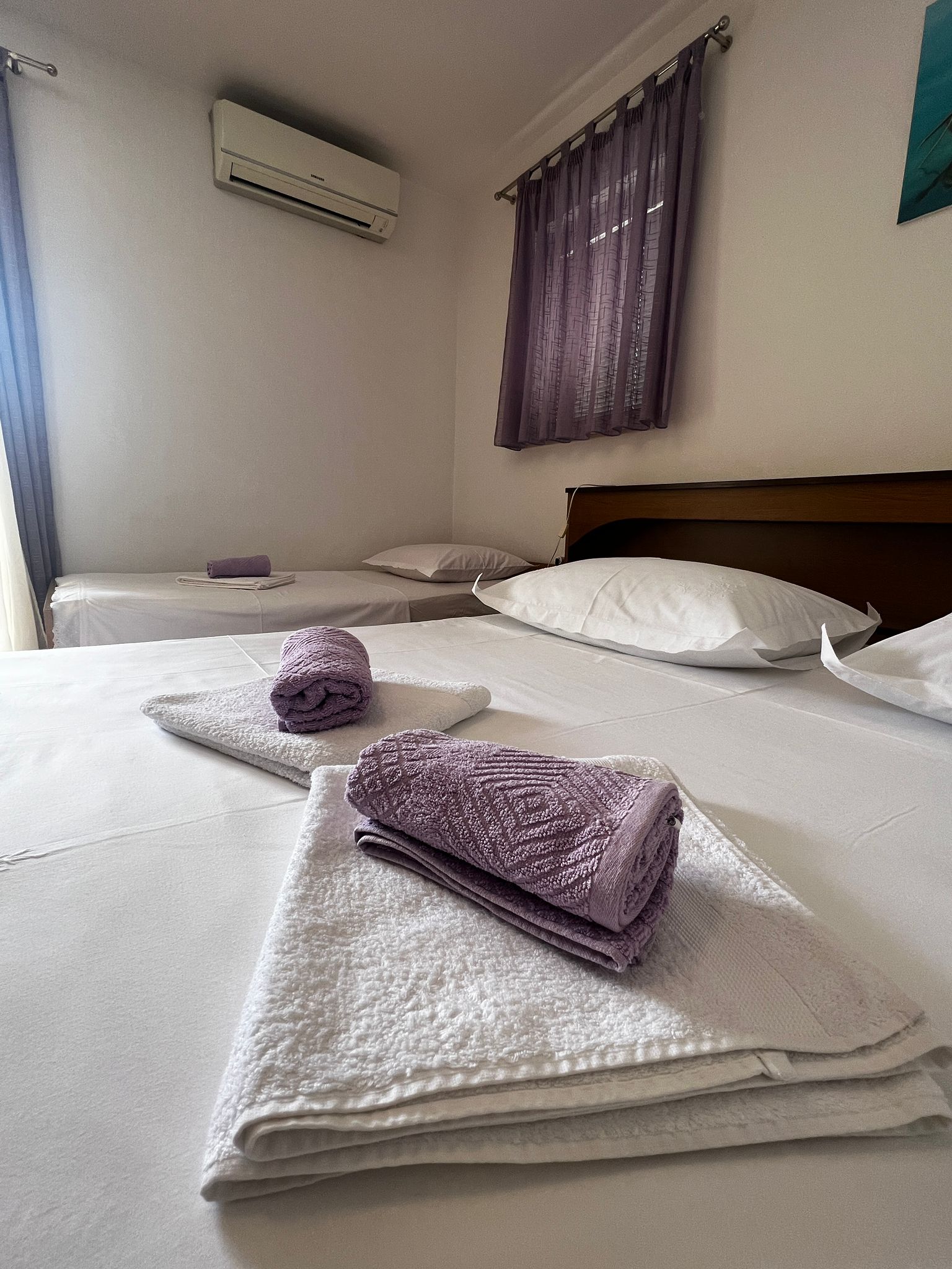 Apartmán Josip I je prostorný, čistý a skvěle vybavený. Disponuje dvěma ložnicemi, velkým obývacím pokojem, dvěma balkony a plně vybavenou kuchyní. (4 osoby)