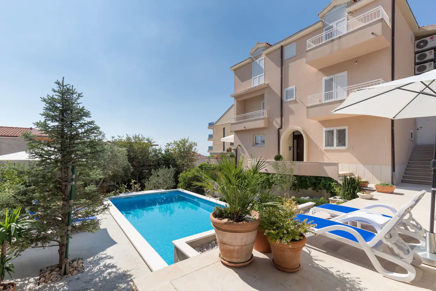 Zaručený odpočinek v prostorném moderním apartmánu s bazénem a výhledem na moře. 🌊 (4 osoby)