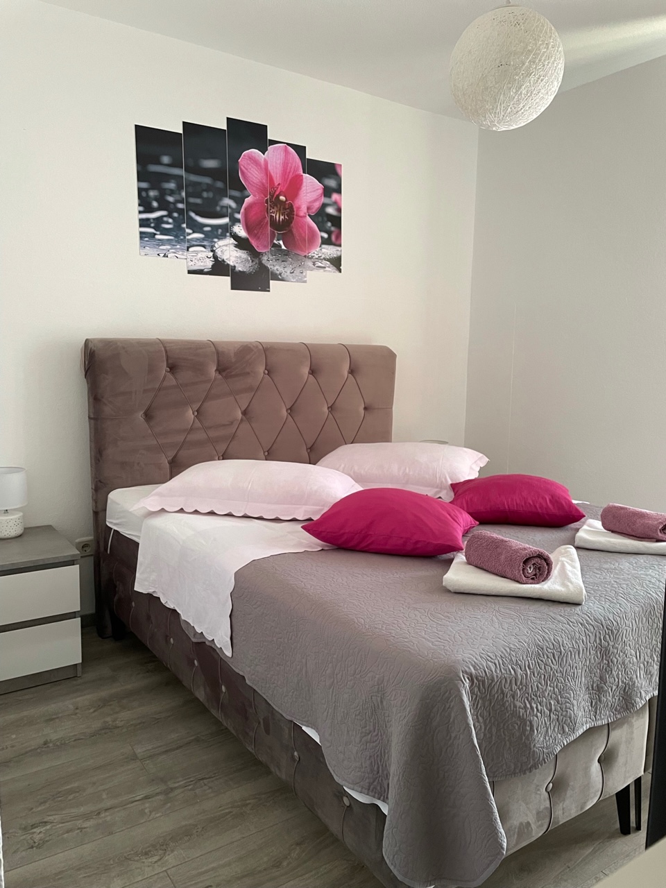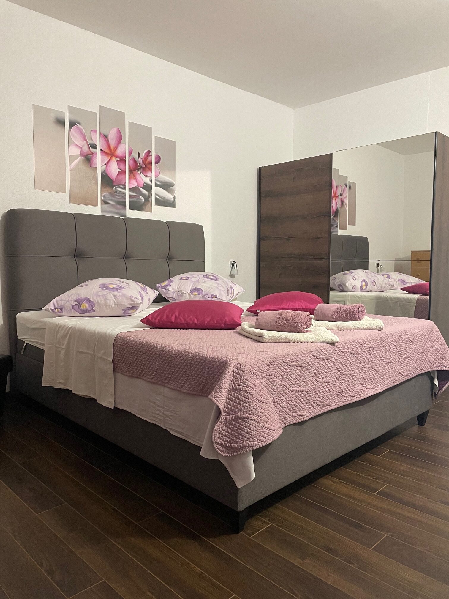 Představujeme Vám krásnou luxusní vilu v Makarské, ideální pro rodinnou dovolenou nebo partu přátel, kteří ocení soukromí prostorné vily a vlastní bazén. 🏡 Vila nabízí 2 patra se 6 prostornými pokoji, 4 koupelnami, velkým obývacím pokojem se vstupem na terasu. Zde najdete velký vyhřívaný bazén. Apartmán má moderní kuchyň s troubou, velkou lednicí s mrazákem, myčkou, kávovarem a mikrovlnnou troubou. Vila má také vlastní zahradu a bezplatné soukromé parkoviště pro minimálně 4 auta.🅿 Samozřejmostí je Wi-Fi připojení k internetu a klimatizace zdarma. 🏖️ Vila se nachází jen 5 minut autem od pláže Makarska v klidné části města Makarská 700 metrů od pláže Ratac a Biloševac 🏖️ Příjezd do apartmánu je možný kdykoliv od 16:00 odpoledne a odjezd kdykoliv do 10:00 ráno. Tyto časy jsou fixní.🕙